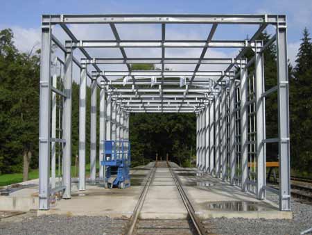 | 26. August 2006: Die Halle ist im Rohbau errichtet. Die Gleisbauarbeiten sind abgeschlossen. | ||